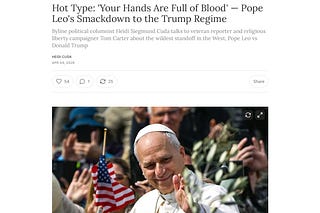 Hot Type: 'Your Hands Are Full of Blood' — Pope Leo's Smackdown to the Trump Regime, Today's Column for Byline
