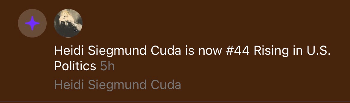 Today, while I was wrapping Christmas gifts, I received a notification from Substack on my phone that I am #44 Rising in US Politics.