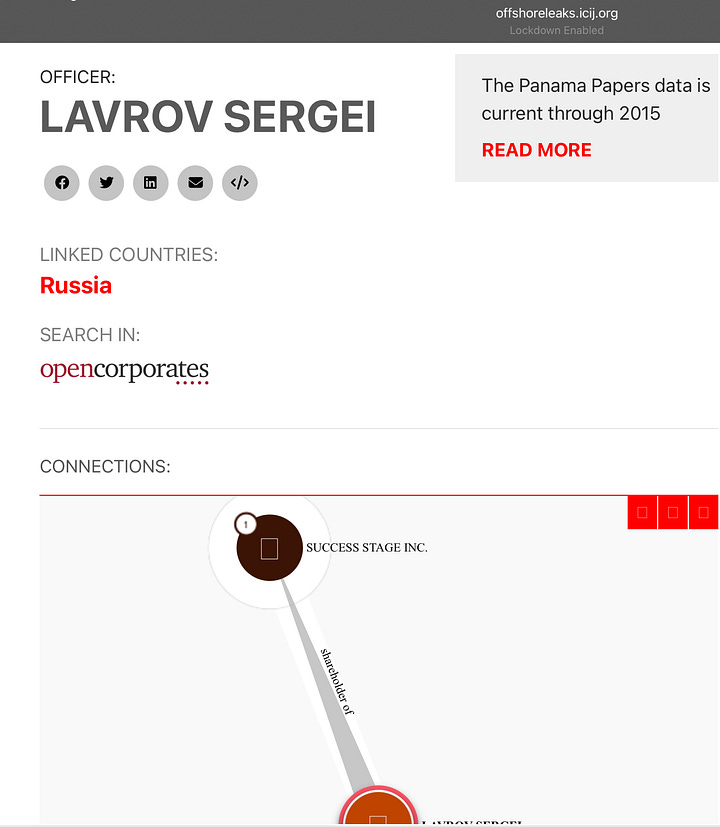 Let’s take a look at what the Panama Papers say about Lavrov through the ICIJ database: