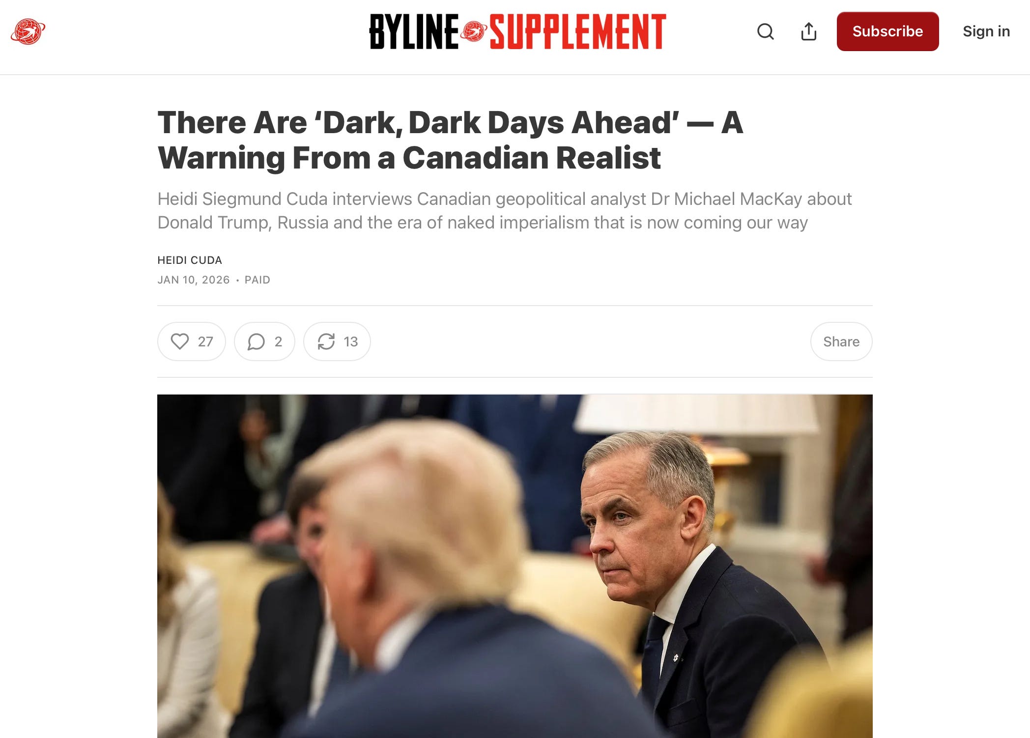 Heidi Siegmund Cuda interviews Canadian geopolitical analyst Dr Michael MacKay about Donald Trump, Russia and the era of naked imperialism that is now coming our way