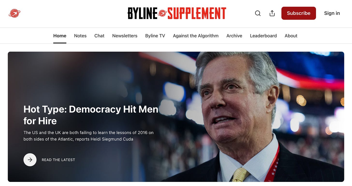Thank you to everyone who supports the work we do at Byline Supplement — it means a great deal to those of us on the frontline of independent investigative reporting. If you are not yet a member of Byline, and you would like to read any of my paywalled columns in full, please reach out to me at bettedangerous/gmail.