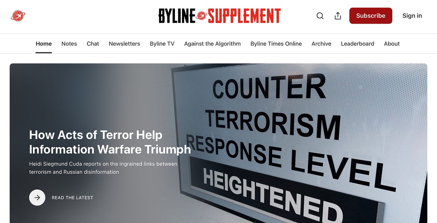 In my weekly Hot Type column for Byline Supplement, the magazine edition of Byline Times, I report on the ingrained links between terrorism and Russian disinformation.