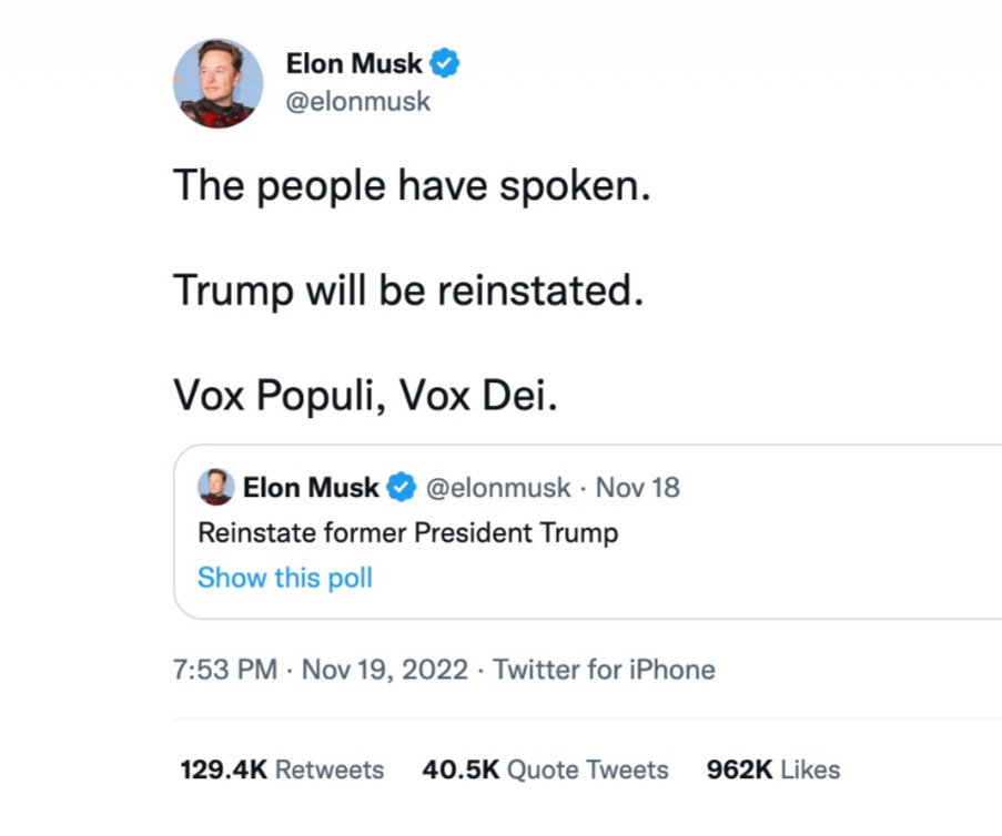 By reinstating them on Twitter, Elon Musk gave them power to help collectively overthrow US democracy, not only in their support of Donald Trump, but in their undermining of democratic institutions.