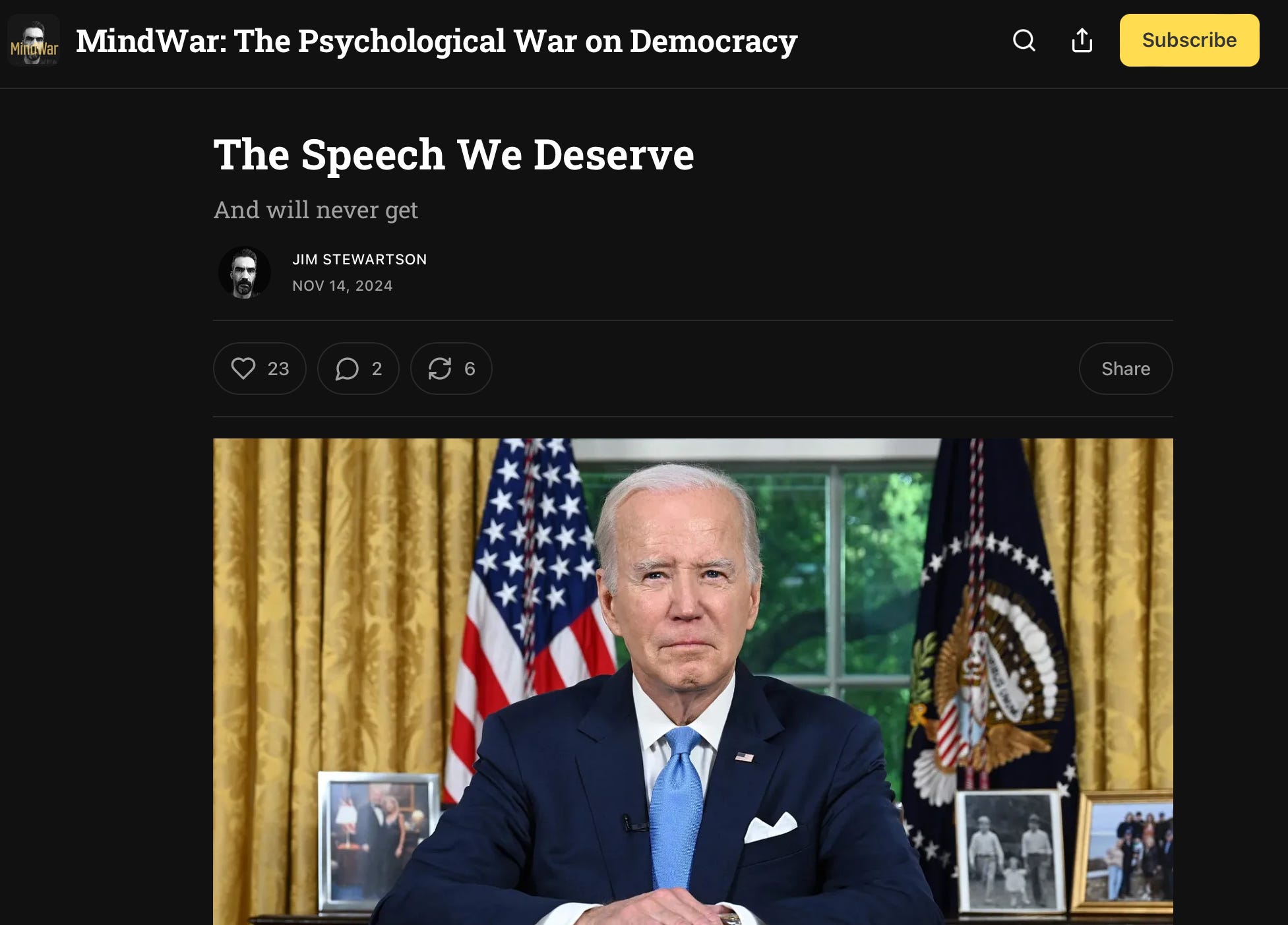 My podcast partner Jim Stewartson writes the speech for President Biden we need to hear — after our previous speech was ignored at the people’s peril