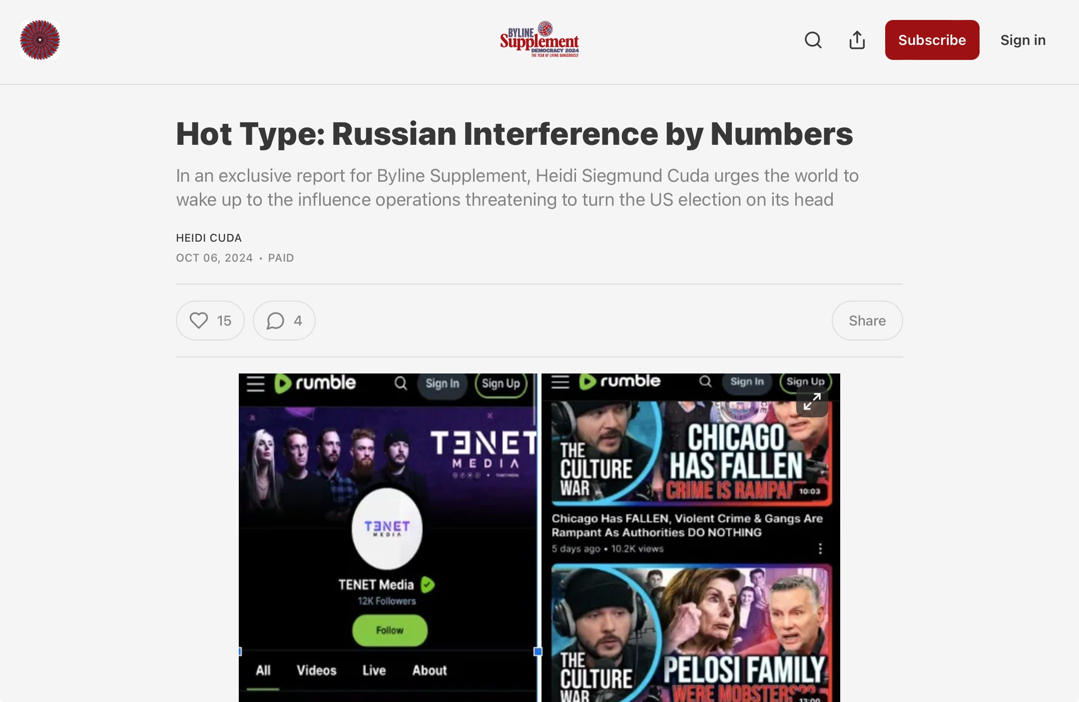 I also reveal how JD Vance’s Rumble not only offers a safe harbor for Russian intelligence operations and is infested with Nazi content, but it continues to platform Tenet Media, which the US Justice Department just revealed was a multi-million dollar covert operation funded by two indicted RT employees linked directly to Russian military intelligence.