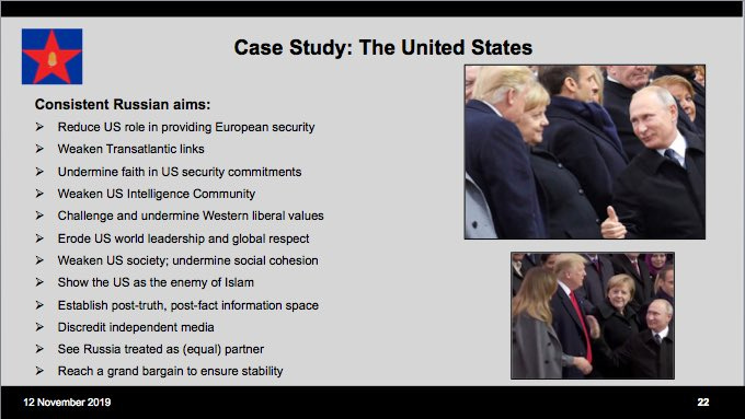 The slide I sent Shawn from a NATO officer’s meeting from 2019 lists all the things that Trump was doing to fulfill Russian aims… among them: