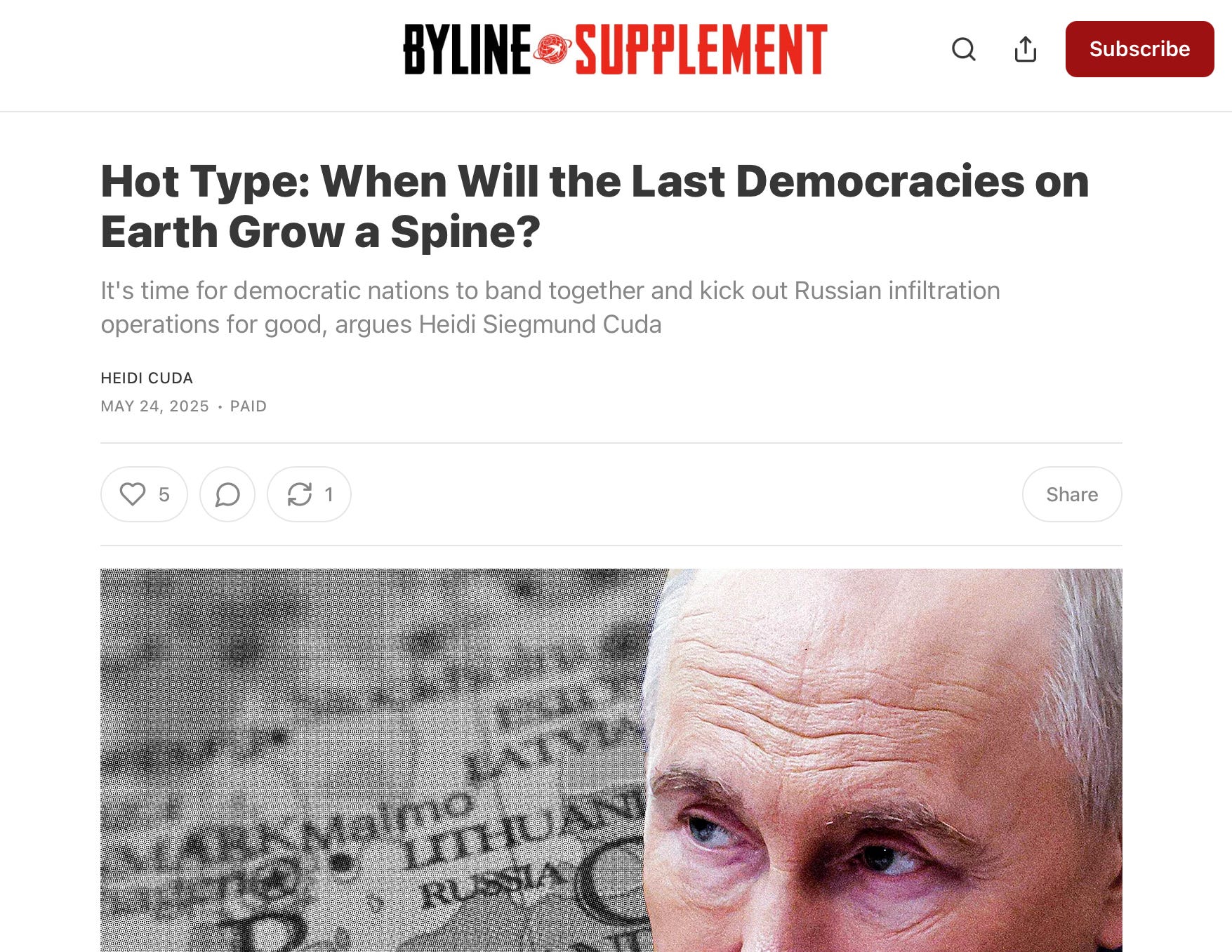 In my Saturday Hot Type column for Byline Supplement, I argue it’s time for democratic nations to band together to kick out Russian infiltration operations for good. An excerpt