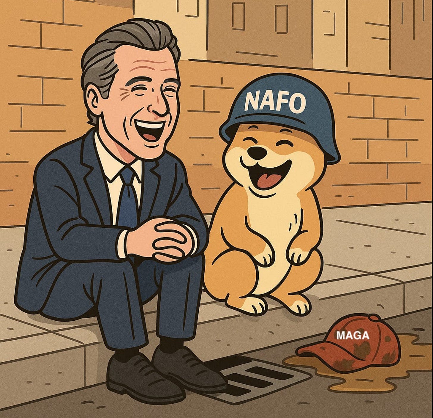 Newsom isn’t NAFO, but he’s the closest thing the U.S. institutional opposition has seen to NAFO-energy with California state power behind it.